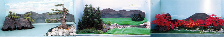 樹木類 盆栽 鉢植木 山野草 苔 擬木と人工芝と人工苔